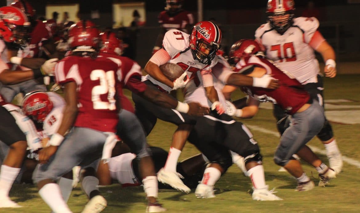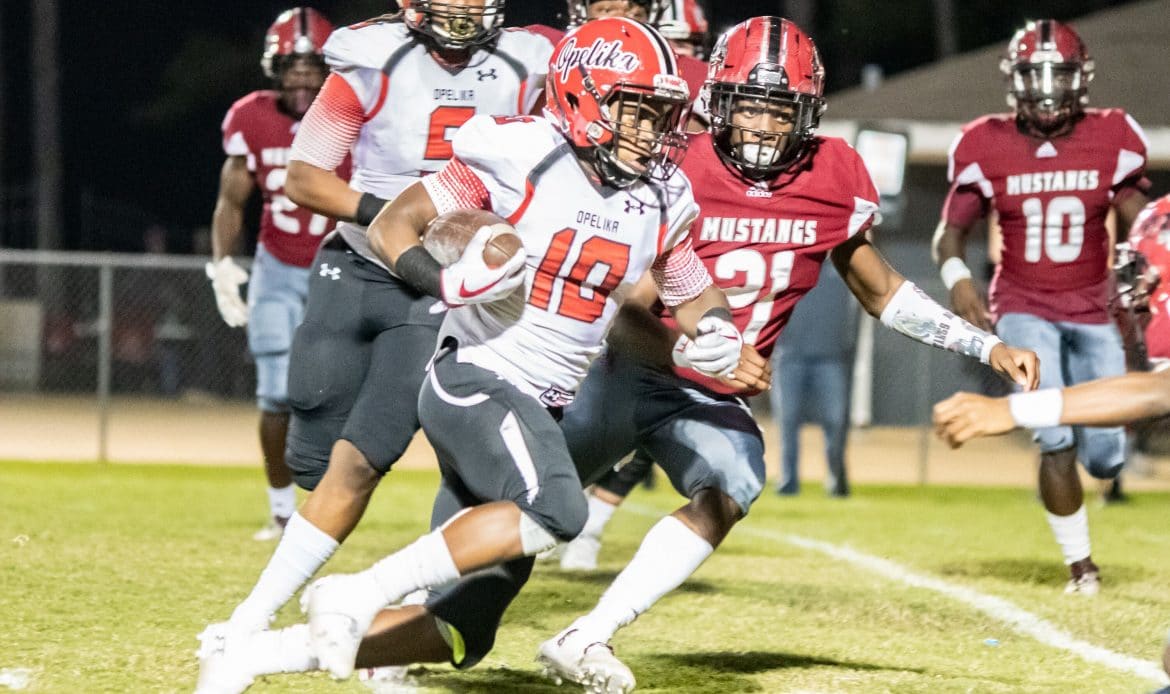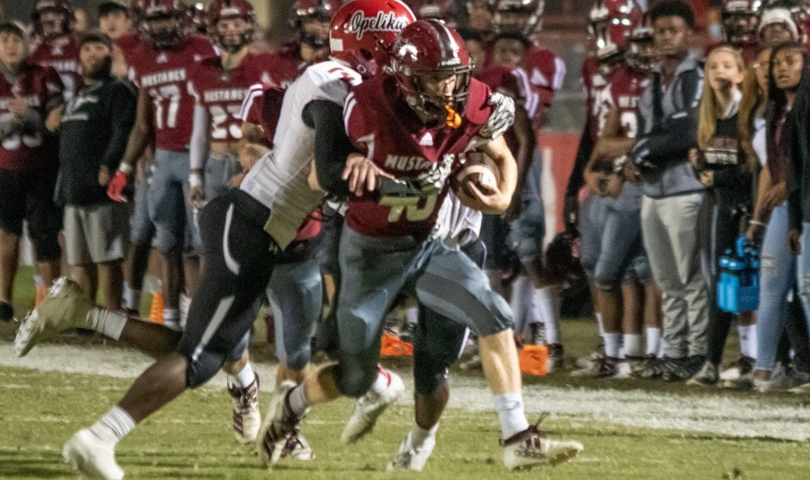 After several defensive stops by both teams, the Opelika quarterback then busted out for a 52-yard rush to get the ball inside the Mustangs’ five-yard line. The Bulldogs scored two plays later to go up 14-7, and never relinquished the lead.