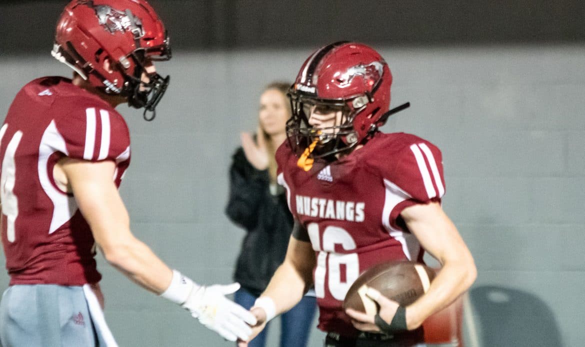 The Mustangs scored the first points of the game four minutes into the contest with an interception returned for a touchdown. They also scored the last points of the game when quarterback Andrew Rines scored a touchdown from 11 yards out at the start of the 4th quarter. In between those scores, the games was thoroughly controlled by the visiting Bulldogs.