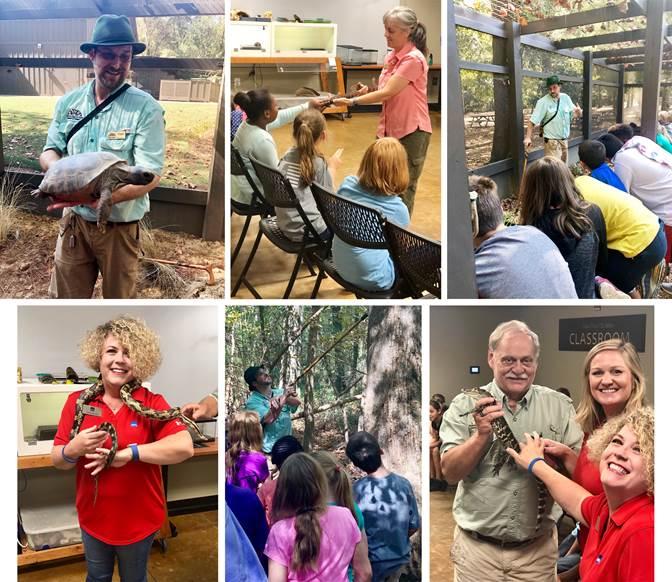 Third graders from Goshen Elementary enjoyed nature to the “MAX” while visiting the Alabama Nature Center (ANC) in Millbrook, thanks to MAX Credit Union. Close to sixty students took part in hands-on, live animal presentations, and went on an adventurous hike on some of the ANC’s 5 miles of boardwalks and trails. The students had the opportunity to walk through the Discovery Hall and spot the gigantic rat snake coiled tightly under tree bark; a sly snapping turtle lurking in the water; tree frogs clinging to branches; and a variety of other native reptiles and amphibians living inside the Discovery Hall at the NaturePlex. They heard the shrill cry of a bald eagle cutting through the air as they stepped into the Raptor Kiosk booth, that contains buttons highlighting 11 different species of raptors.