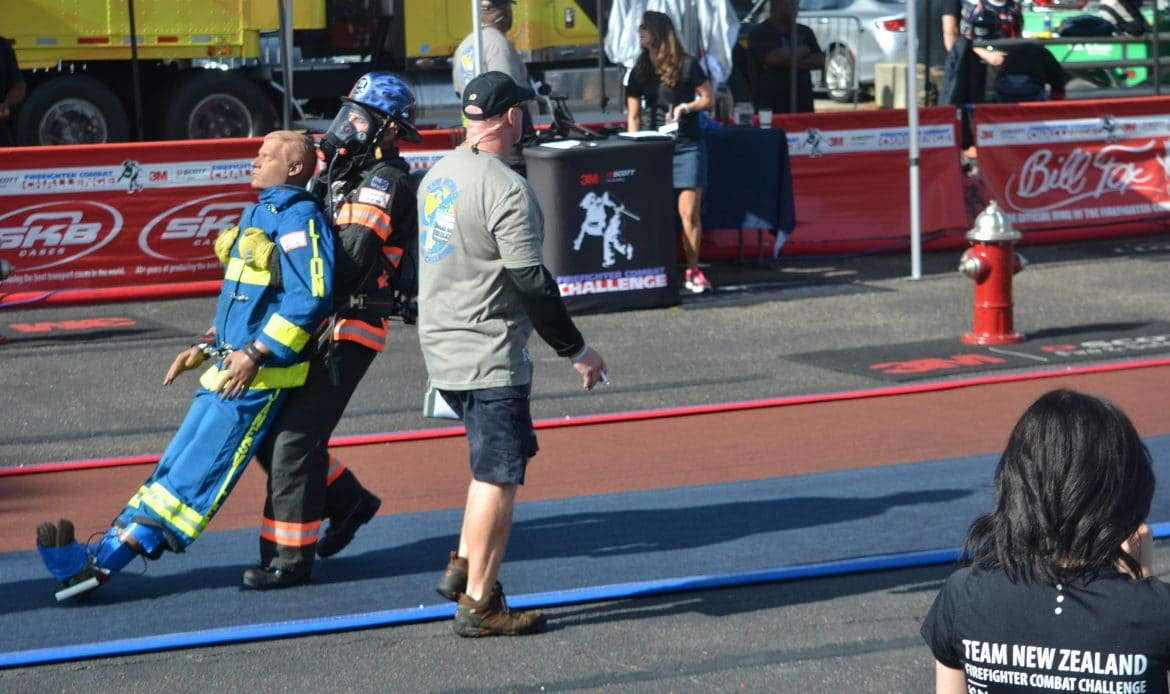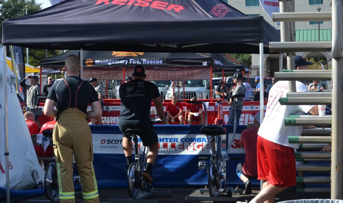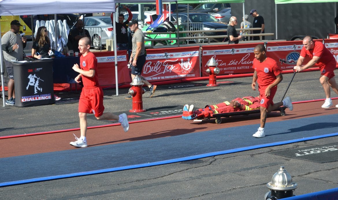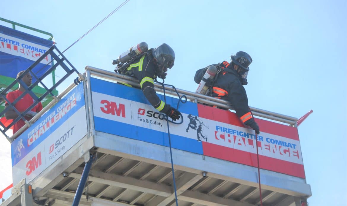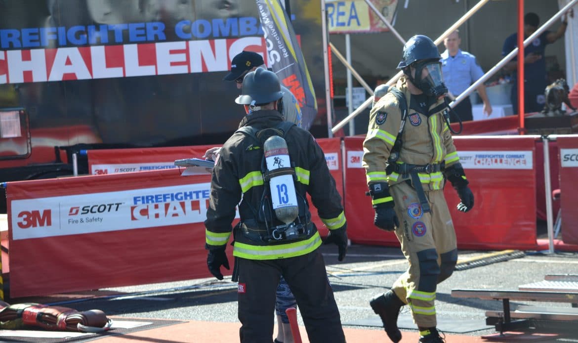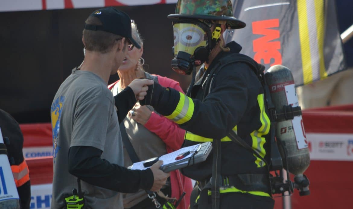 Each competitor must do each individual challenge wearing full gear – mask, oxygen tank and all. This gear can add up to an extra 40 pounds of weight for the competitors, and is worn to simulate the real life demands of the job.