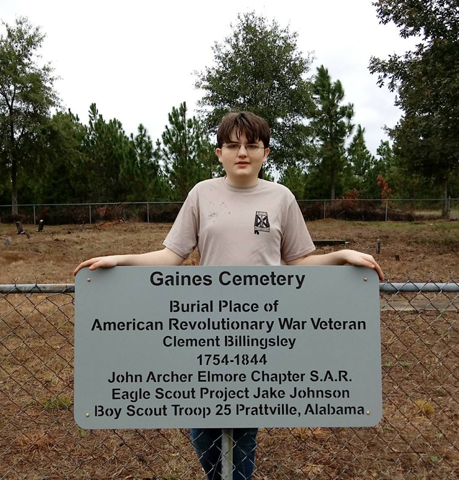 UPDATE ON GAINES CEMETERY- Oct. 26 Jake Johnson, a member of Boy Scout Troop 25 of Prattville, installed a special sign at the Gaines Cemetery near Vida, as part of his Eagle Scout Project to clean the grave of CLEMENT BILLINGSLEY. Jake, as well as his fellow troop members, went over and beyond in cleaning this cemetery. Thank you to JAKE JOHNSON AND PRATTVILLE TROUP 25!