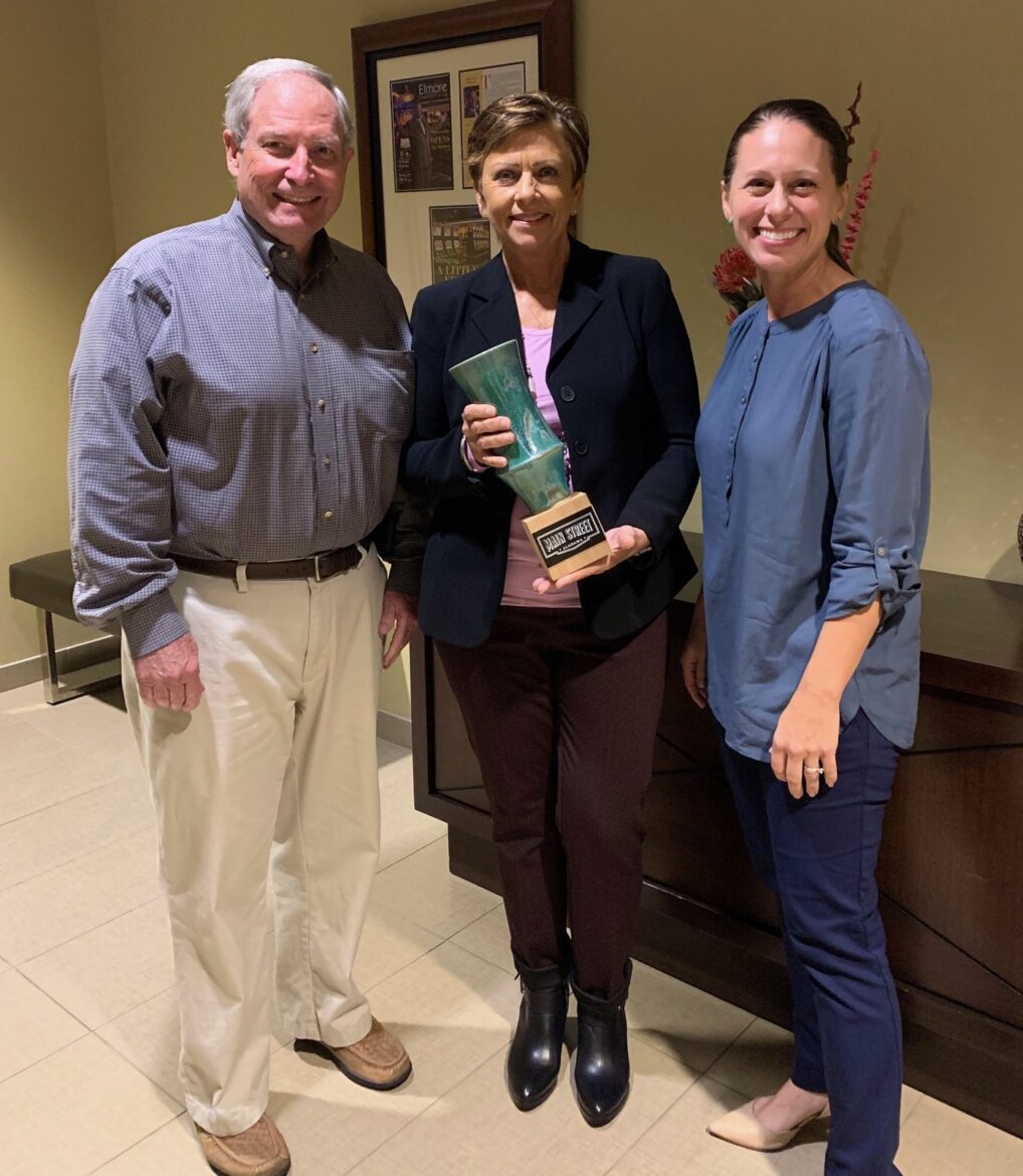 Main Street Wetumpka recently awarded its Main Street Alabama Community Hero Award to Kay Simmons, property manager of the Wind Creek Casino & Hotel Wetumpka. Main Street Wetumpka Executive Director Jenny Stubbs and Board President Dennis Fain were on hand to deliver the handcrafted award.