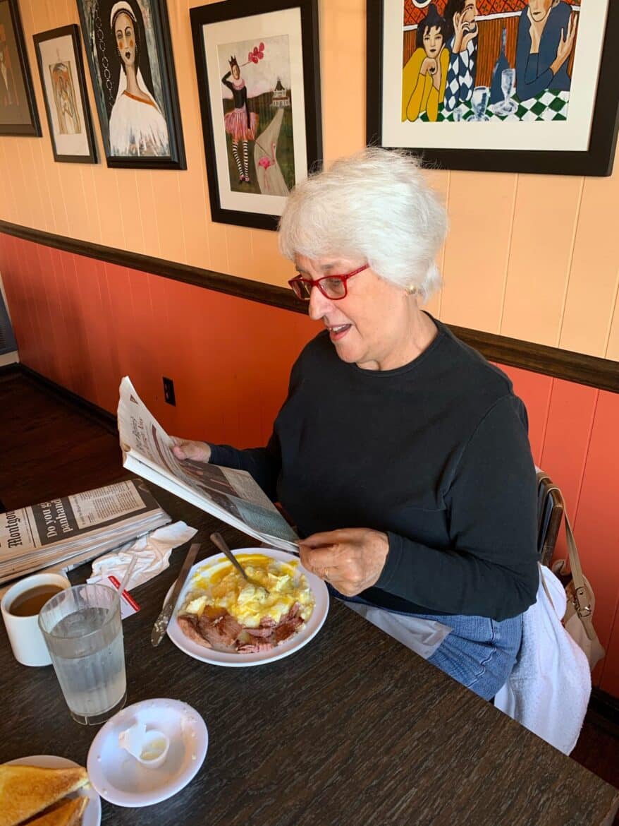 For the last two weeks, Ms. Peg McDonald, 76, has started a newspaper reading club that meets everything Thursday at 8:30 in Jim’s Restaurant. And YOU are invited to join her!