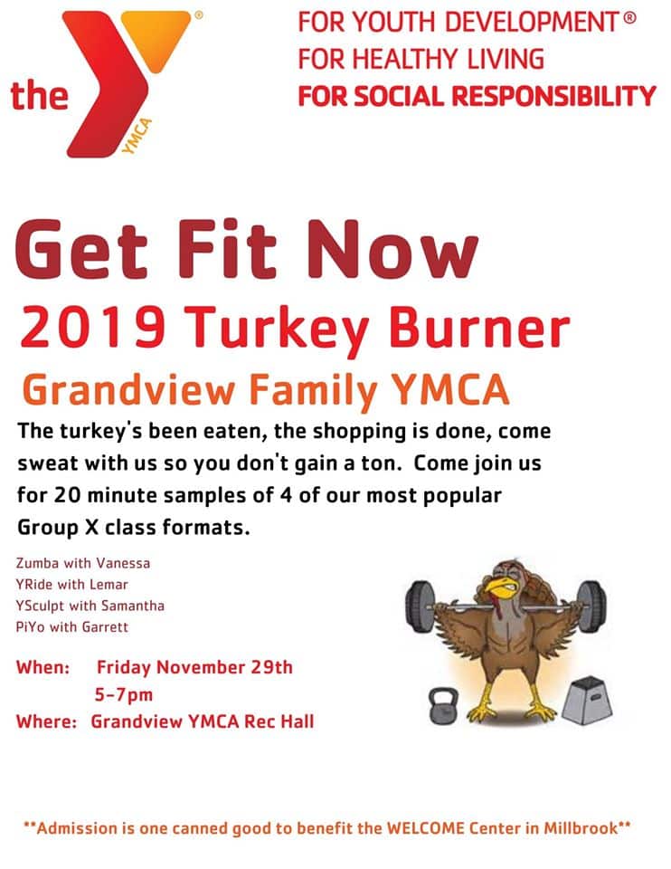 The organization is hosting the 2019 Turkey Burner Nov. 29 from 5-7 p.m. at the Grandview YMCA Recreation Hall. You can take part in Zumba with Vanessa, YRide with Lemar, YSculpt with Samantha and PiYo with Garrett.