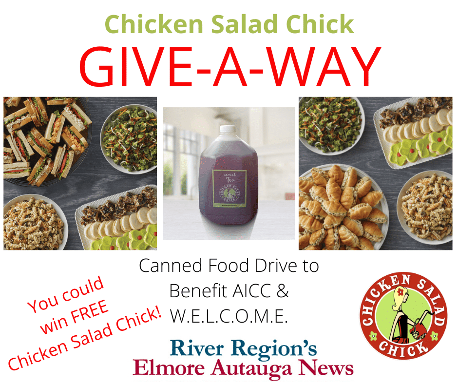 Three lucky individuals who donated will be eligible to win a large platter, two sides, cookies and a drink from Chicken Salad Chick! To enter into the drawing, upload a selfie or a photo of your kids dropping the food in the bins and attach the picture in the comment section below the pinned post at the top of our Facebook page. You must also ‘like’ both Elmore Autauga News and Chicken Salad Chick on Facebook in order to win.