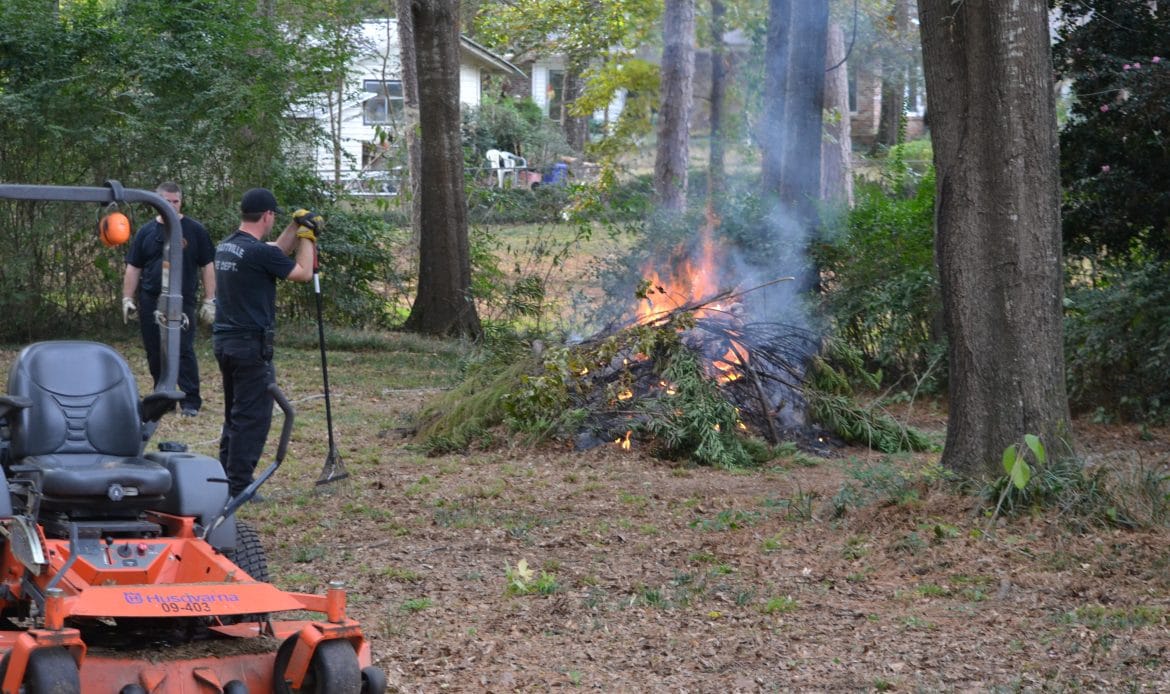 As the firefighters worked, they started a large burn pit in the backyard to dispose of all the debris – and there was a LOT of debris.