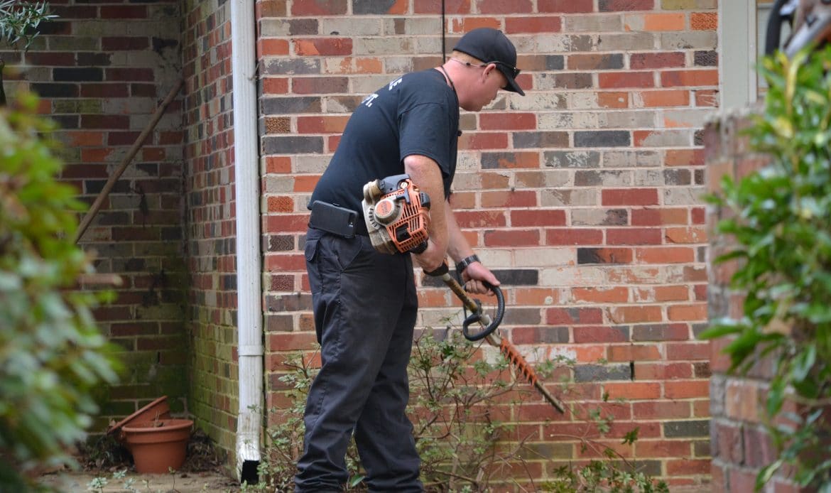 On Monday, November 18th, the Firefighters returned to cut the grass, that, according to Weigel, was well over shin high. They also went ahead and trimmed the bushes in the front of the home and took a look at the back of the house.