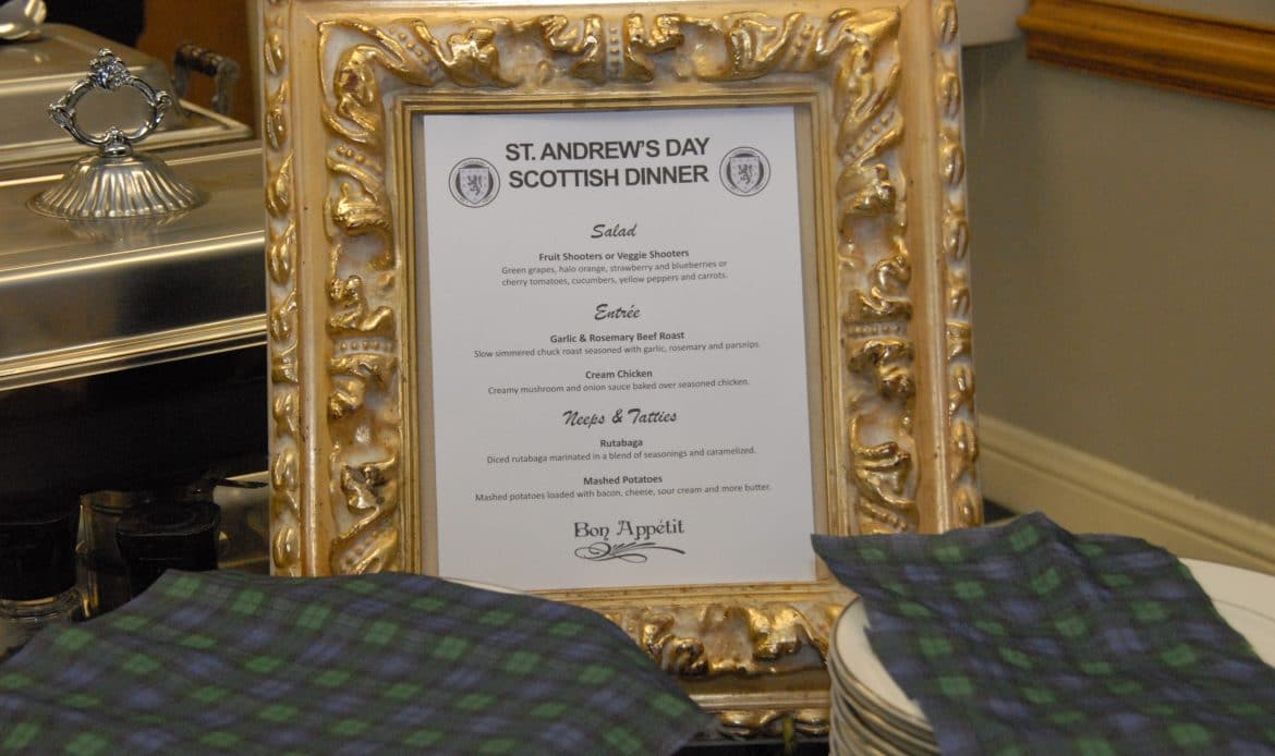 The traditional Scottish meal was prepared by Bon Appetit Catering.