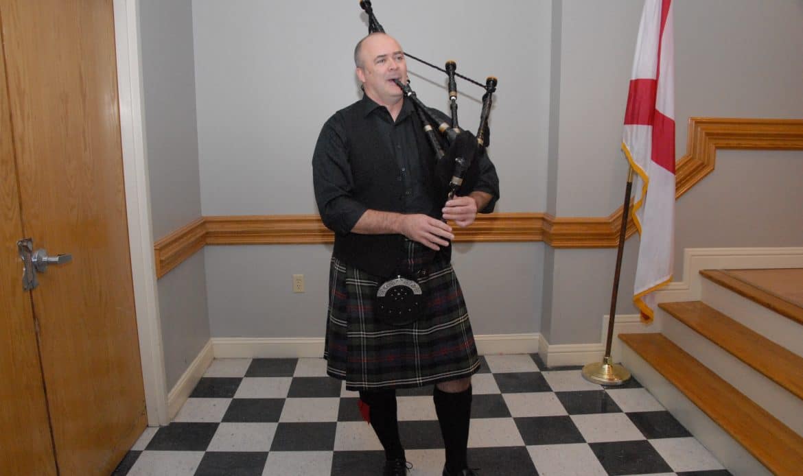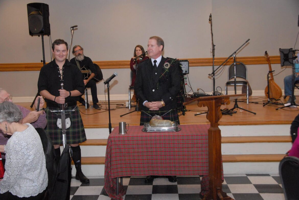The sound of Bagpipes filled the air before Brannon gave the presentation and the address of the Haggis (A Scottish tradition of reading a poem before serving of the Haggis, which is a Scottish sausage).