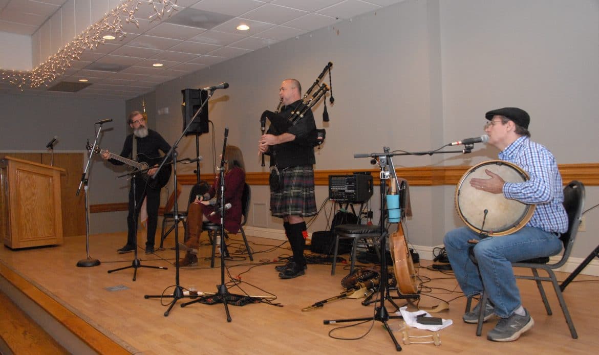 Brannon and Carol Bowman with their son, Thomas, organized an evening filled with music and song from the Birmingham Celtic group Hooley.