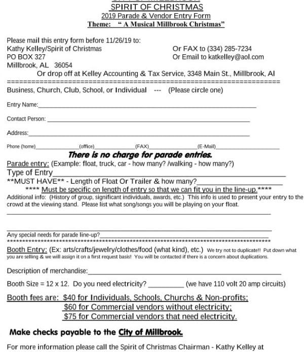 There is no charge for parade entries. We will not send out a line-up number. You will be shown your line up position the day of the parade. You will be sent an acknowledgement of your entry form if you include an email or FAX number on the form.