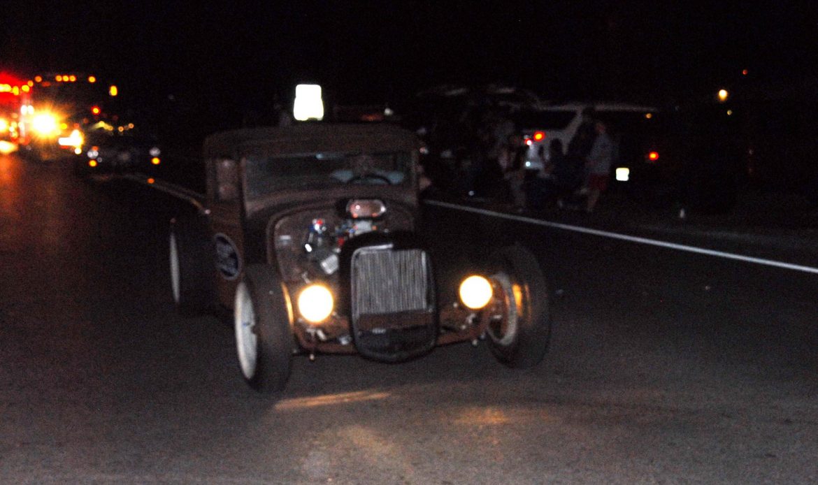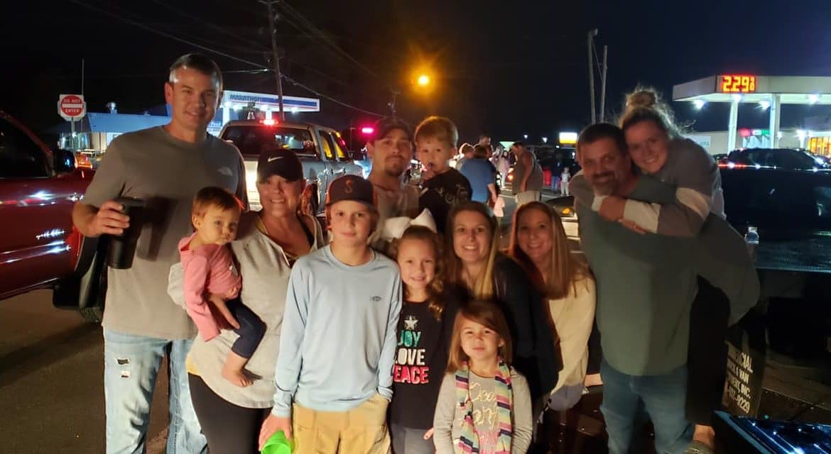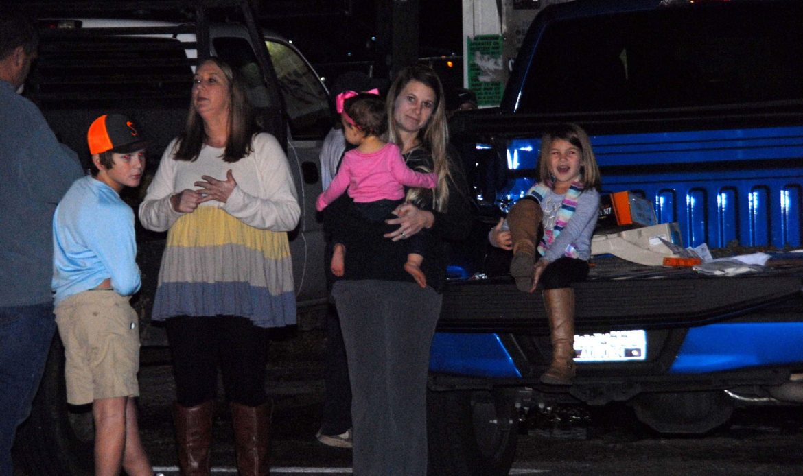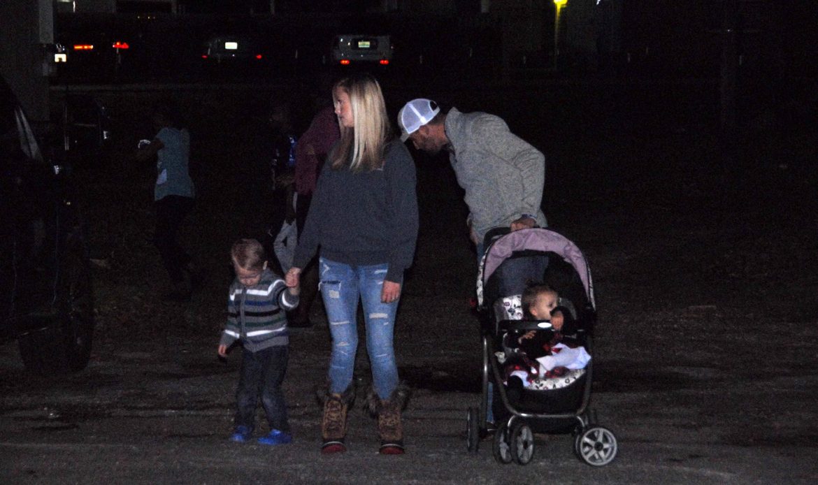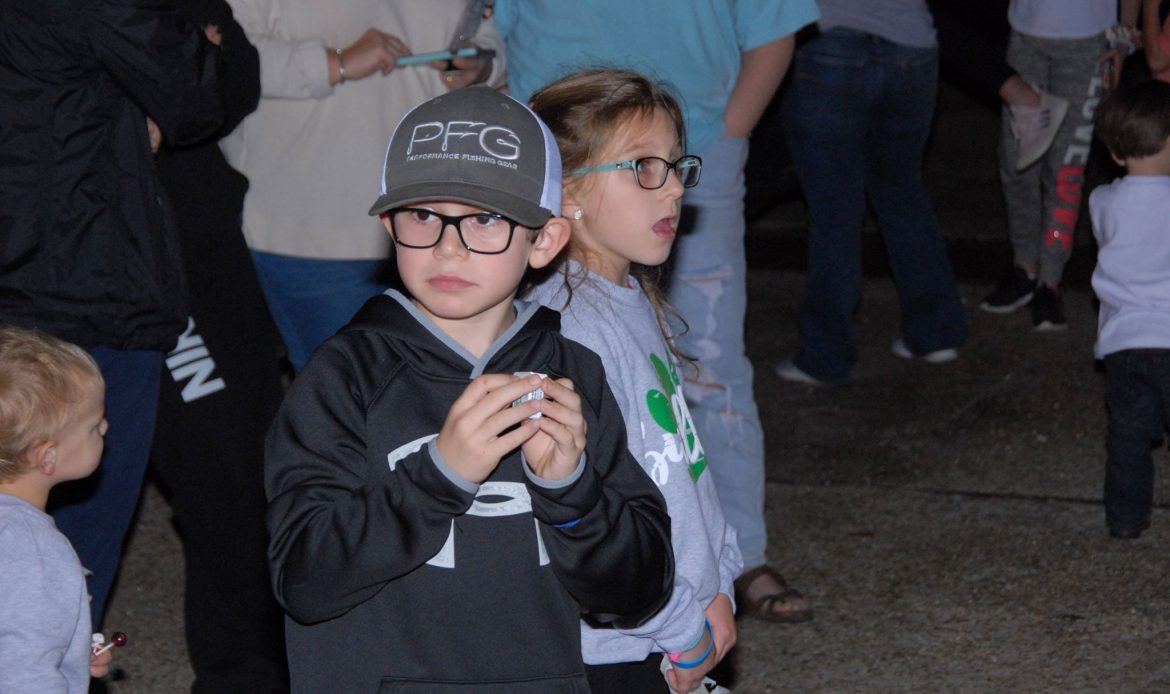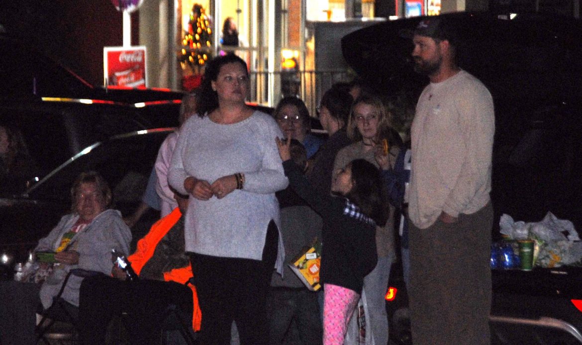 Along the parade route, families sat on tailgates, on blankets or stood in groups to wave as floats passed by, and candy flew through the night air.