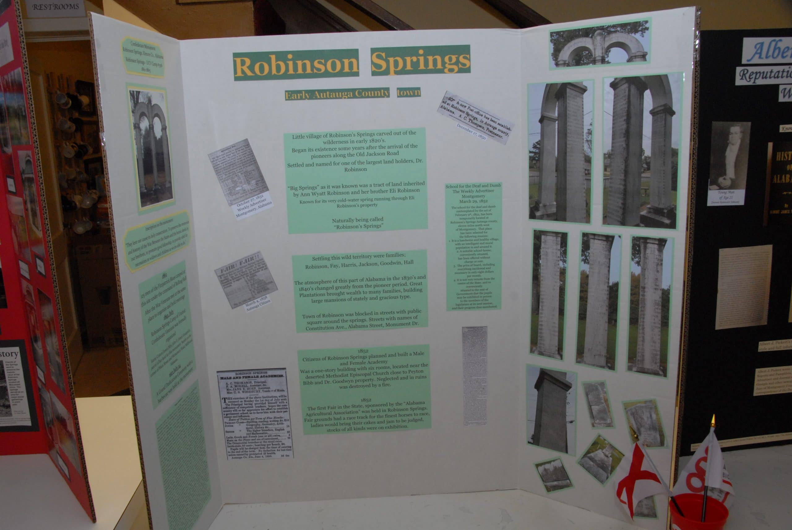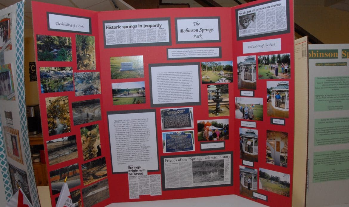 The society has a collection of histories about local communities, churches, and landmarks. These histories were compiled in folders and were placed in the Millbrook public library. They have since been removed to update. WECHS was also instrumental in saving the Springs at Robinson Springs from destruction, the creation of the new Park and the placement of the Historic marker in the Park.
