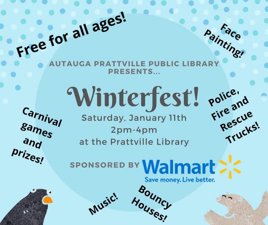Join us for a FREE fun afternoon! Bouncy house, carnival games and prizes, music, face painting and police, fire and rescue trucks!!! This is also the kick-off party for our Winter Reading Challenge!