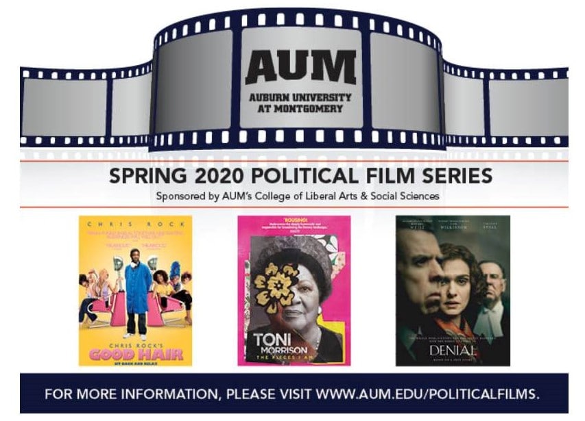 The Political Film Series is sponsored by AUM’s College of Liberal Arts & Social Sciences and spotlights films that focus on pressing current events, anniversaries, and national and cultural holidays. For the spring series, showings will be held for the documentaries “Good Hair” in observance of Black History Month in February and “Toni Morrison: The Pieces I Am” in celebration of Women’s History Month in March. In April, the series will host a showing of the film “Denial,” a Holocaust biographical drama, to address anti-Semitism in today’s society.