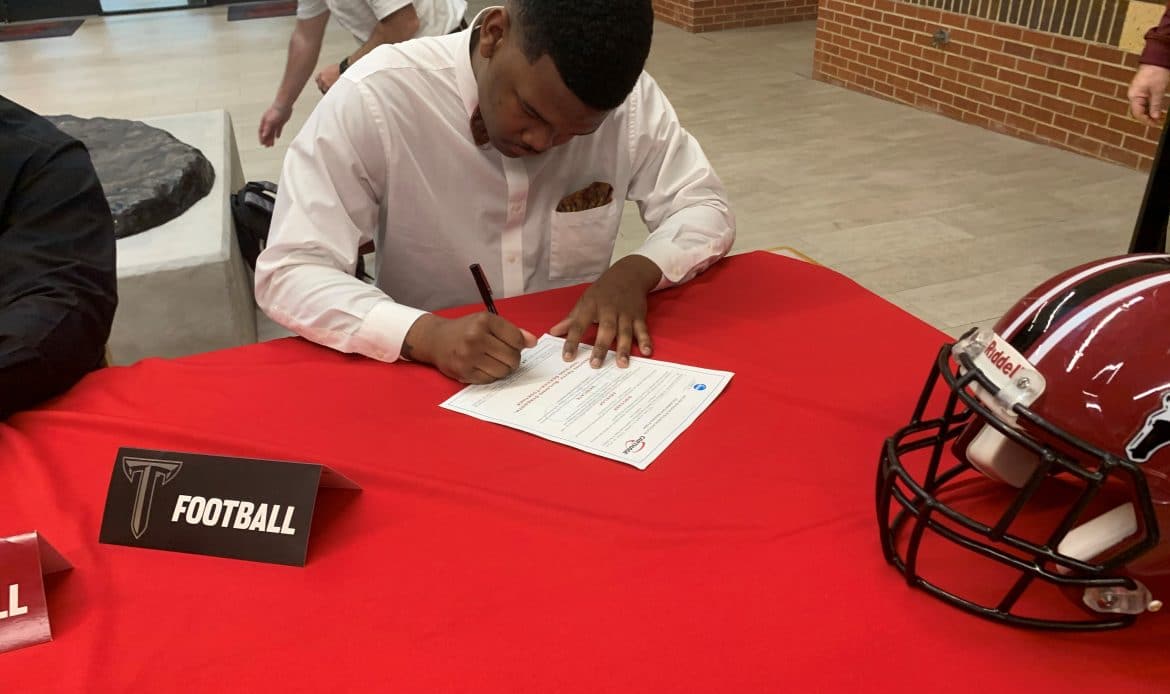 “This is a special day. Any time you sign a college scholarship, it’s unbelievable. We’re blessed to have four signing here today, and hope to have more in the future. These guys are our leaders. They were the ones that were always there, giving 100 percent all the time, and that’s what it takes. They did what they needed to do in the classroom, and on the football field – that’s why they’re up here right now,” Bradford said.