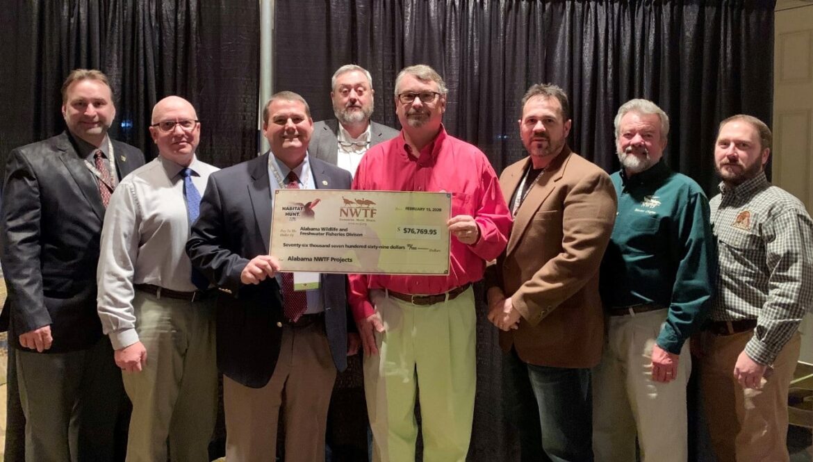 The Alabama Chapter of the National Wild Turkey Federation (NWTF) recently allocated $167,685 in Hunting Heritage Super Funds for wild turkey projects in Alabama. Of that total, $76,770 was donated to the Wildlife and Freshwater Fisheries Division (WFF) of the Alabama Department of Conservation and Natural Resources (ADCNR) to fund projects including wildlife habitat management and the publication of the annual wild turkey report, Full Fans & Sharp Spurs.