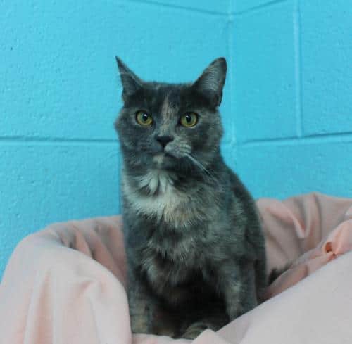 Kix is a 1 year old, female gray tortoiseshell cat. She came to the shelter when a kind lady found her and brought her in. No one came to reclaim her. Kix has what we think is an old injury to her back left leg. We will be taking her to the vet to find out what exactly is going on. She does NOT have a problem getting around or using the litter box. Kix will be considered a special needs cat. We are going to require that she be an indoor cat only. She is the most affectionate cat we have been around and would make an excellent companion. Isn’t she beautiful? Since we are not doing adoptions at this time, she is available for foster until the Covid-19 epidemic is over. If you are interested in fostering Kix, please send an email to [email protected].