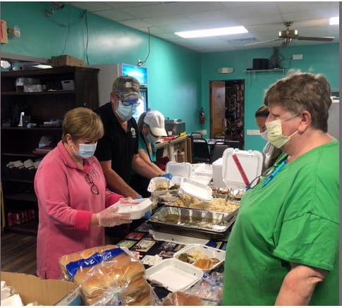 Filling such a big order takes manpower and Lucretia Cauthen of Lucretia Cauthen Realty, volunteered her time to help on the Front Porch Grill meal assembly line. “I went up to Front Porch Grill on Thursday to order some lunches and I saw how busy they were at that time. The servers were doing all that they could. I found Marty Bean and asked if there was any way I could help and he put me to work on the assembly line. I would do it again if he needed me,” Cauthen said.