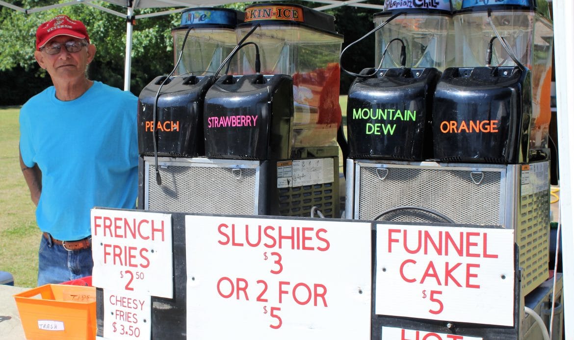 Bill Anderson of Anderson Farms brought traditional โfair fareโ to the market, selling a variety of slushees, funnel cakes, nachos, hot dogs and more.