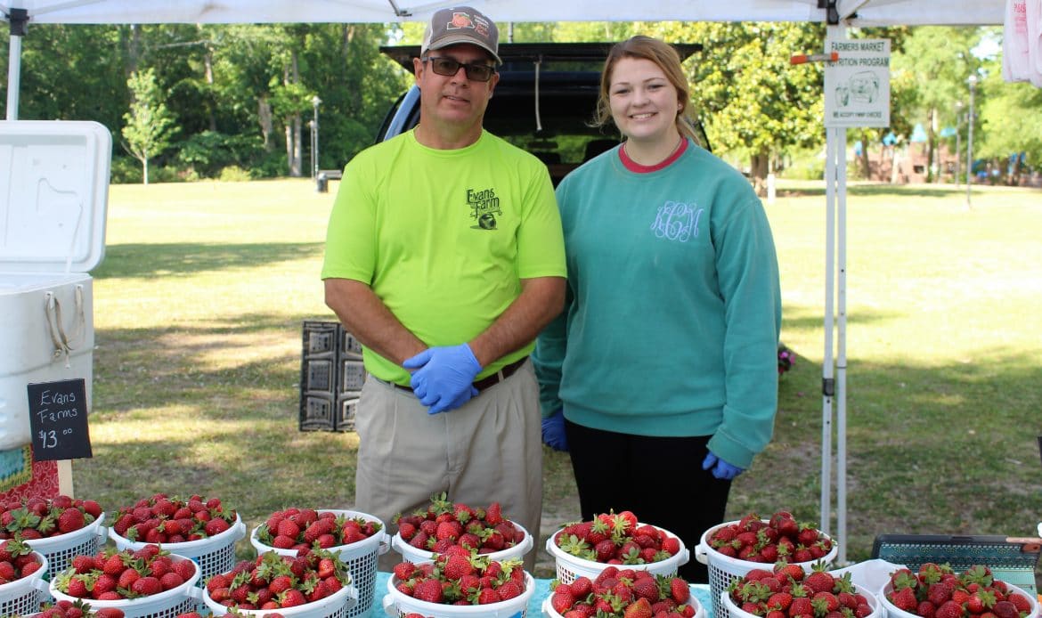 Evansโ sister farm, Penton Farms, also brought fresh vegetables and baskets of the super sweet strawberries it is known for producing.