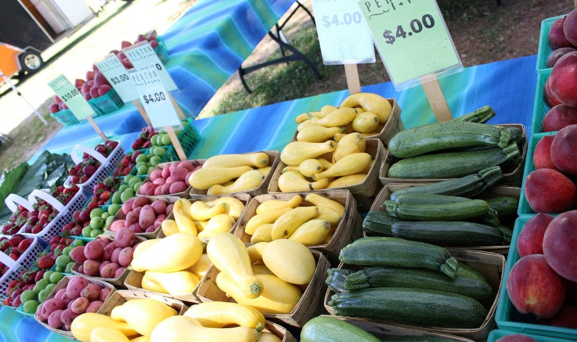 Evans Farms sold a variety of potatoes, onions, peaches, zucchini and squash this week. โNext week I should have cucumbers,โ said owner Keith Evans. โA few weeks from now the tomatoes should be ready.โ