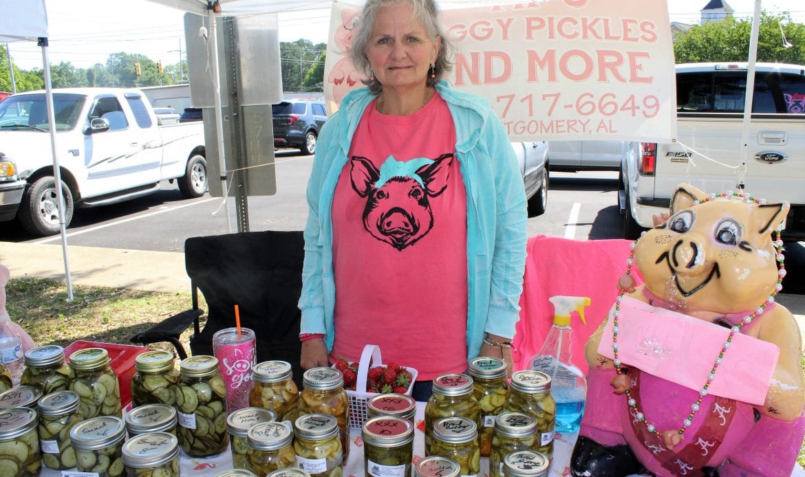Tif Smith of Tifโs Piggy Pickles & More, was there selling a variety of pickles, salsa, and even hand-made face masks for virus protection. She said business was good.