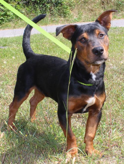 Flash is a 1-year-old male Basset Hound mix who has already been neutered. He came to PAHS as a stray from a neighborhood in Prattville and his owner never came looking for him. Flash’s short coat is super shiny! He is black with gorgeous brown markings. Check out those front feet–there’s some Basset Hound in this guy for sure! Flash currently weighs 31 pounds and he won’t get much bigger. He actually appears bigger than he is in his pictures. That’s why we left that blade of bahia grass in his first picture. You can see he is no taller than bahia grass! Since Flash is a stray we are still learning about him. We know he would be great in a home with children and other dogs. It just doesn’t get any cuter or happier than Flash. He is going to make an amazing family dog. Flash is available for adoption and waiting at PAHS for some lucky adopter!