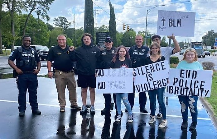 In fact, Millbrook Police Chief P.K. Johnson and his crew dropped by the second day when teens from Stanhope Elmore High School and Holtville High School were holding signs and brought them water and offered them his support.