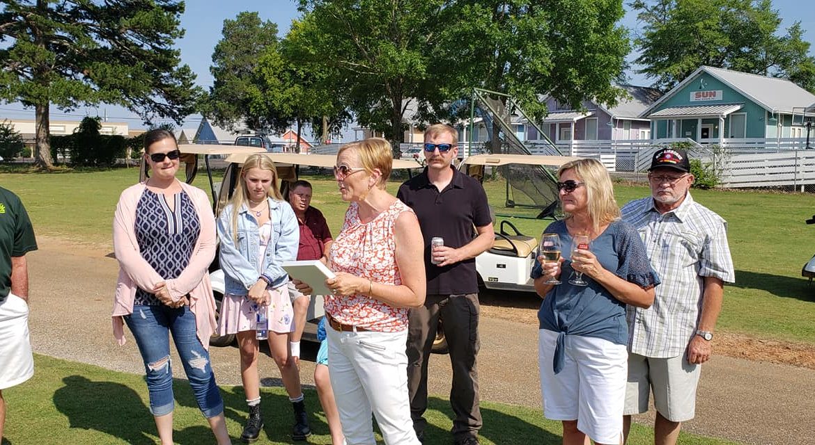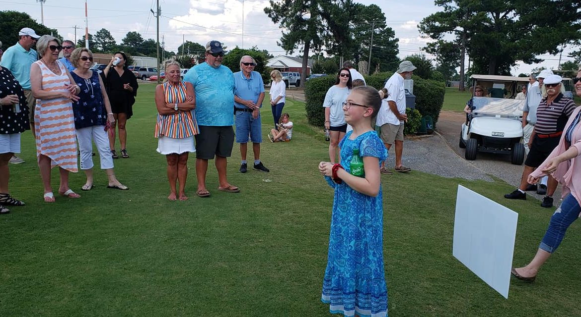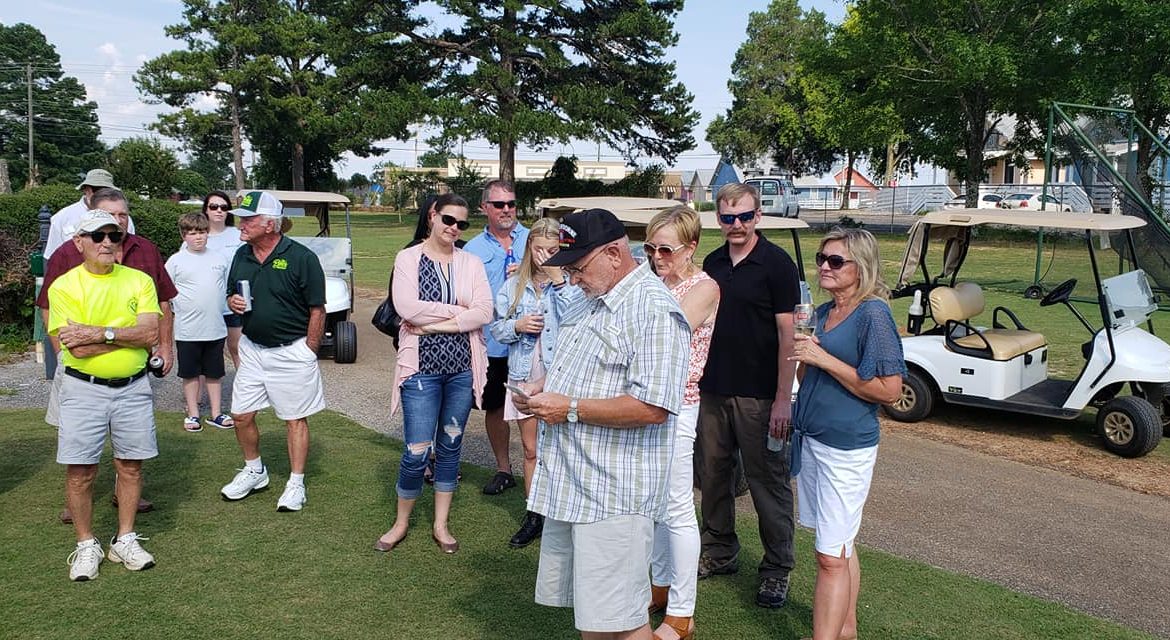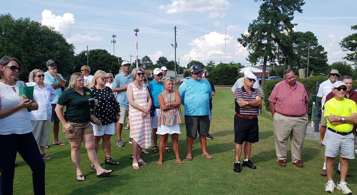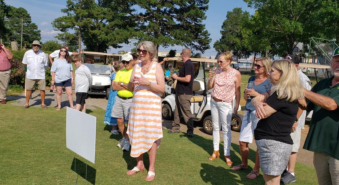 “I want to thank everyone for coming out today to honor a gentleman that we all loved and that loved this golf course,” Millbrook Mayor Al Kelley told the large gathering. “JP came to me about five years ago and said ‘Al, we need to cut a bunch of trees down, and do this and that.’ I agreed. I probably didn’t realize until I saw that green today. JP had a vision for that hole. All my experiences with JP, Judy and Earl and Sharon Mills…even when we bought the golf course from them in 2004, have been great. This was JP’s second home. At times you probably believed it was his first home.”