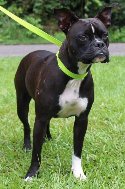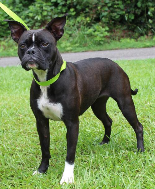 Zoe is a 2-year-old female Boston Terrier mix who has already been spayed. She came to the shelter as an owner turn in because she was not getting along with the other family dog. Zoe is black with white markings and she has an unforgettable face! We just love the various expressions she can make! Zoe weighs 35 pounds so she is considered to be a medium sized adult dog. She won’t get any bigger. This girl is friendly and sweet to people and would be good in a home with children. However, Zoe does not get along well with some other dogs. We would suggest she be an only dog in the home or if you have another dog to bring your dog out for a “meet and greet” with Zoe before you consider adopting her. She prefers to live indoors and, according to her previous owner, she is working on her house training but does sometimes still has occasional accidents inside. Zoe is leash trained and very well behaved when she is being walked. Why not come out and take Zoe for a “getting acquainted” walk and see if she wouldn’t be a great choice to live with you?