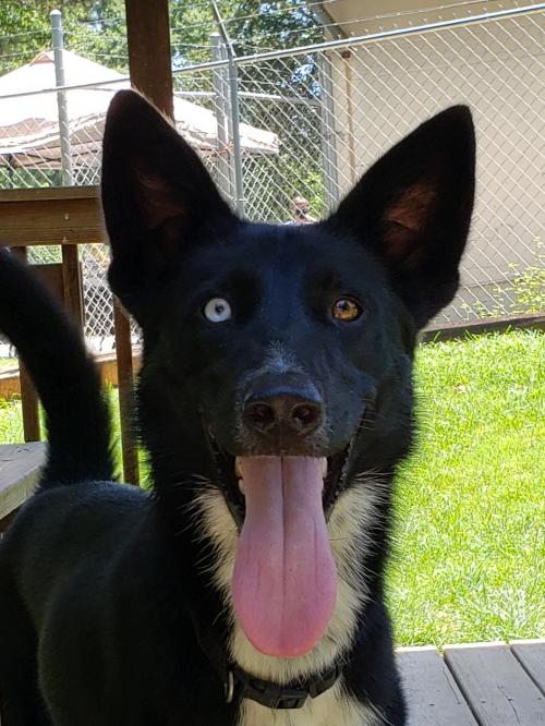 Buck is a one-year old male Border Collie/Shepherd looking mix, about 55 lbs. He is an energetic but well-mannered boy that gets along well with dogs and cats. Mostly housetrained and crate-trained, needs a good fence to keep him safely at home. Buck would make a great running, hiking and camping buddy for an active owner.