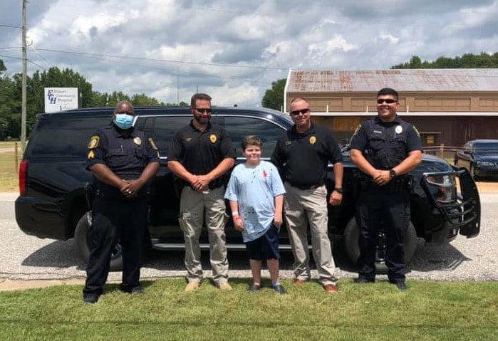 Photo Above: T.J. Esco stands with Wetumpka Police Department personnel who helped to give a police escort back to Elmore County Friday.
