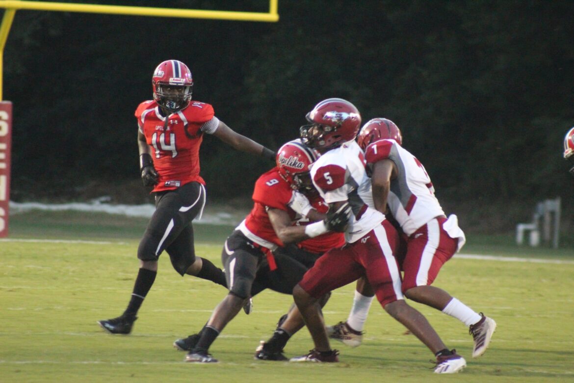 Opelika responded quickly, with running back Eric Watts busting through the line for a 58-yard touchdown on the second offensive play. The extra point tied the game at 7.