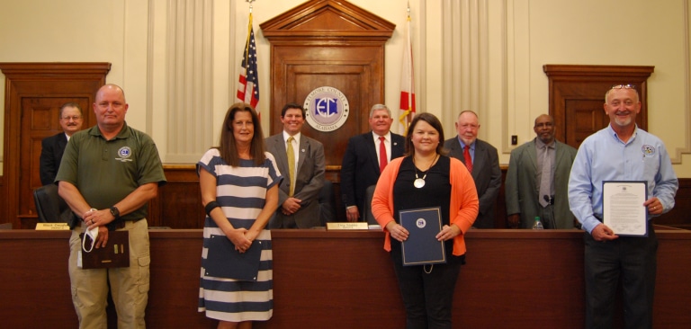 During the Commission Meeting on September 14th, the County Commission recognized the Elmore County Board of Education Child Nutrition Program Director Cacyce Davis, and Elmore County EMA Volunteer Donna Poeppelmeier and other volunteers for their efforts in coordinating meal distribution for Elmore County students during the COVID-19 pandemic.