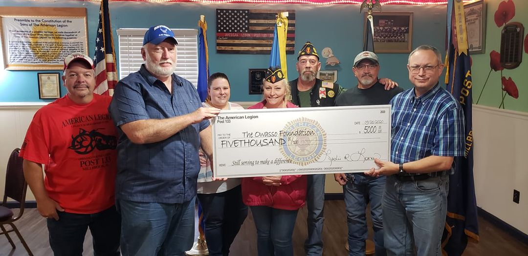 The Owasso Foundation of Clanton was the recipient of a $5,000 donation Monday night at the American Legion Post 133 in Millbrook.