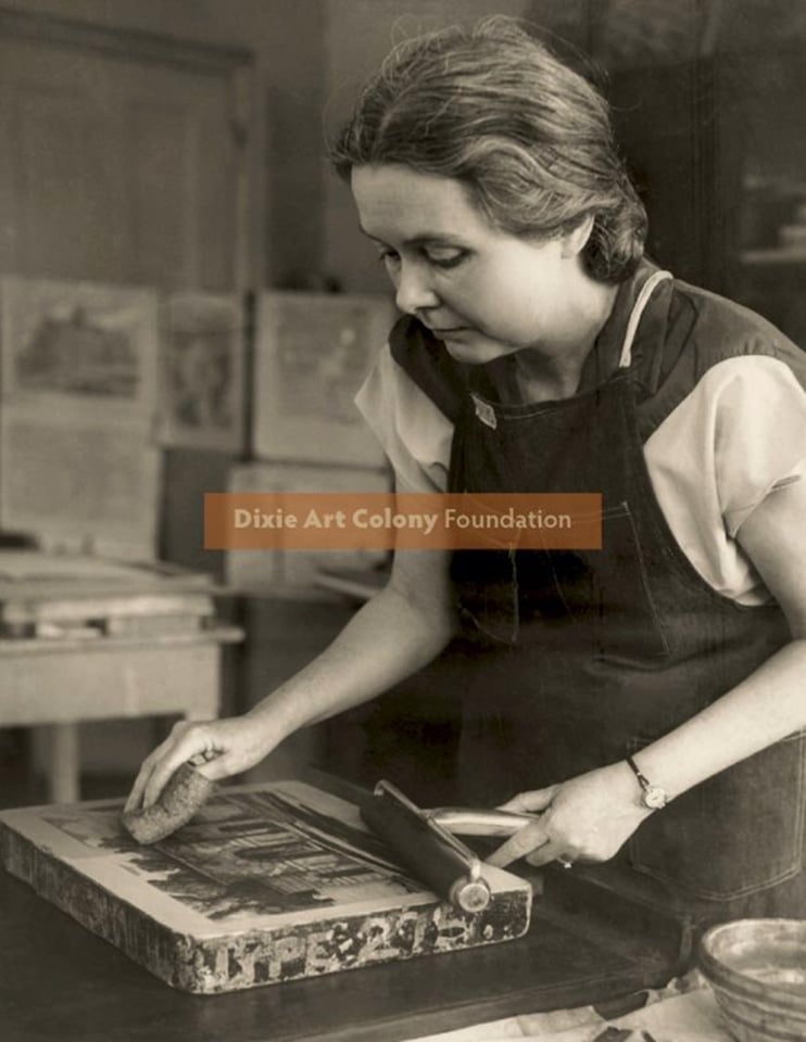 In late July of 2019, we were contacted through our website regarding the possible donation of a vast collection from the estate of the late DAC artist Doris Alexander Thompson. The extensive artwork collection includes a large group of stone lithographs, sketchbooks, and numerous paintings. In addition to the artwork, the collection also includes lithograph stones, a rare lithography press with accessories, numerous scrapbooks, art books, vintage photographs, and several manuscripts and poems written by Alexander Thompson. According to an article published in the “Montgomery Advertiser” on October 5, 1947, at the time, Alexander Thompson owned one of the few lithography presses in the South.
