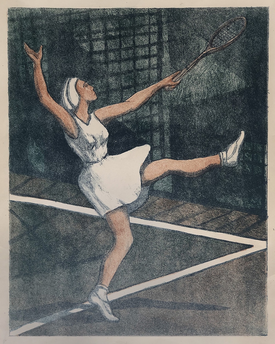She also took painting courses under the direction of Alexander Abels. Alexander Thompson was a “true lithographer,” not only did she sketch her compositions, but she also transferred her sketches to stones and made her own prints. Stone lithography, invented in 1798, was the first printmaking technique that allowed artists to create prints that could rival an original painting in terms of detail, mood, and color variations. This near extinct art, utilizing limestone slabs, requires special training, skill, and talent.