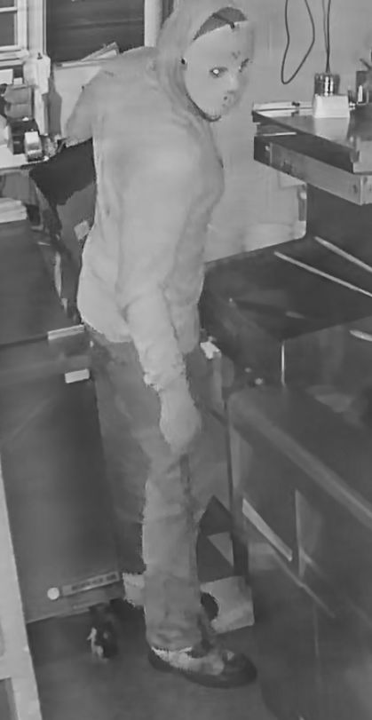 On October 2, 2020, between the hours of 12:00 and 3:00 a.m. three businesses were burglarized in the 200 Block of East Three Notch Street, 400 Block of East Watson Street, and the 100 Block of Tucker Street. Video surveillance captures an individual dressed in a hoodie wearing gloves and a hockey mask.