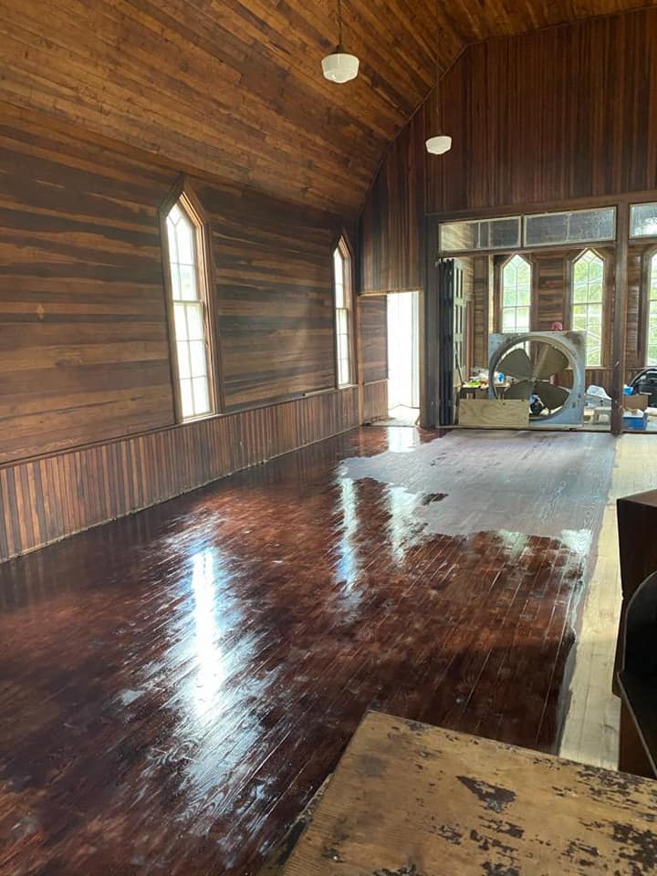 OAHS is still hard at work at VINE HILL PRESBYTERIAN CHURCH (1887). Lynn Langston Burrell and myself stained half the new floor in the sanctuary today. It is not completely done, but Vine Hill is starting to BLING!