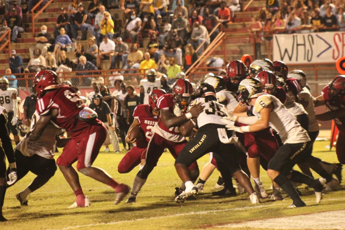 The Stanhope Elmore offense leaned on their offensive line and running backs in the annual rivalry showdown against the Wetumpka Indians, and it led to an impressive showing in a 23-13 win for the Mustangs. The win marked the 3rd consecutive win for the Mustangs over the Indians.