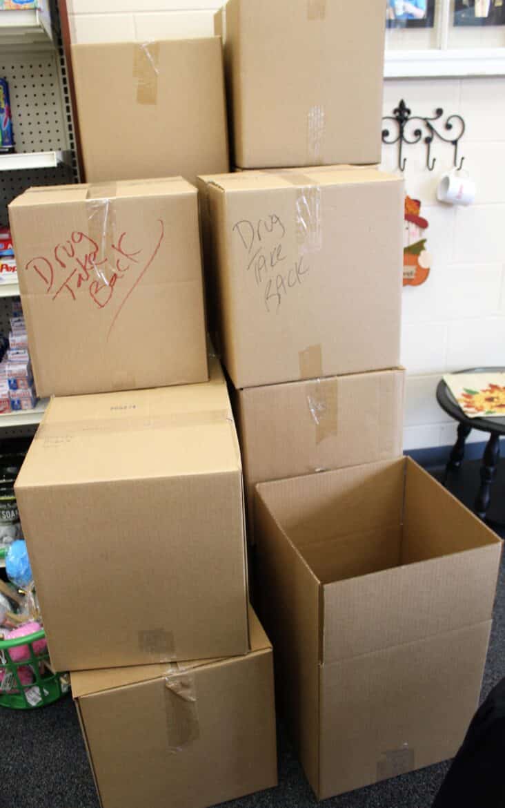 Customers filled more than 17 boxes full of unwanted medications at the Jones Drugs in Millbrook Saturday during National Prescription Drug Take Back Day. The store took 287 pounds of drugs off the street in just a short time.