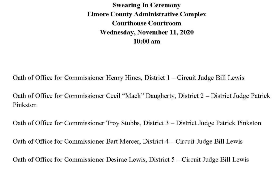 The Elmore County Commission meets on the 2nd Floor of the Historic Elmore County Courthouse, downtown Wetumpka with this meeting starting at 10:00 am.