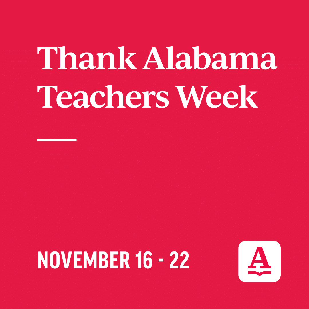MONTGOMERY, Ala. — The Alabama State Department of Education (ALSDE) announced today it will honor educators across Alabama with a special Thank Alabama Teachers Week beginning Monday, Nov. 16 and concluding Sunday, Nov. 22.