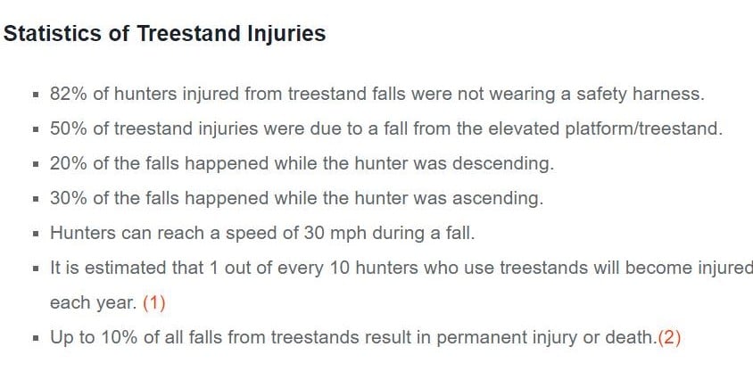 Up to 10% of all falls from treestands result in permanent injury or death.