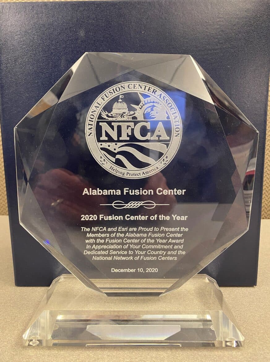 MONTGOMERY — The Alabama Law Enforcement Agency (ALEA) is proud to announce the recent national recognition of its Alabama Fusion Center (AFC) as one of two Fusion Centers of the Year for 2020. The National Fusion Center Association (NFCA) honored both the AFC and the Georgia Information Sharing and Analysis Center (GISAC).
