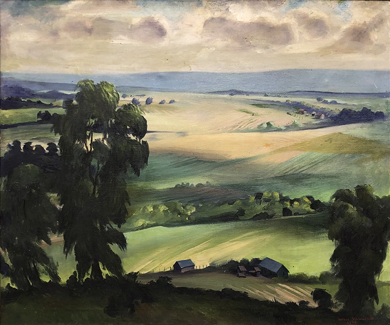 Due to our donors’ generosity, we were able to make what is a VERY SIGNIFICANT purchase of this large 1940 oil landscape by Dixie Art Colony artist Arthur Walter Stewart. The painting was acquired directly from Stewart by the grandmother of the person that sold us the painting. Opportunities to make a purchase such as this one do not occur often.