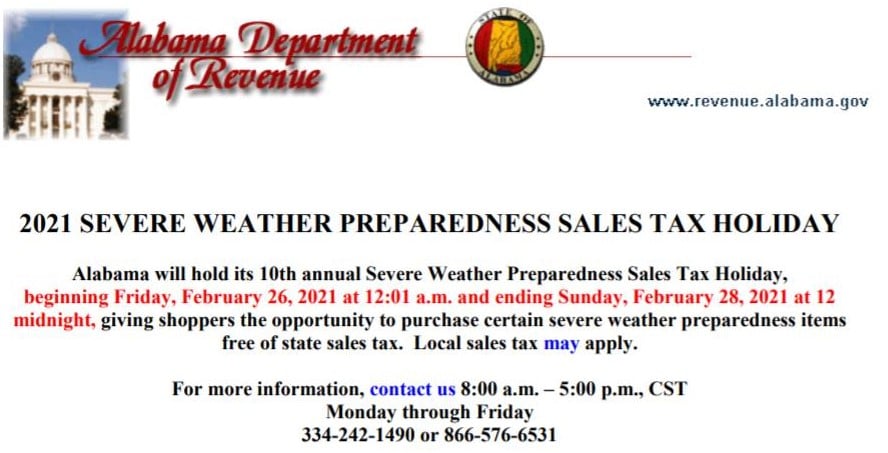 Severe Weather Preparedness Tax Free Weekend Starts Friday, February 26th