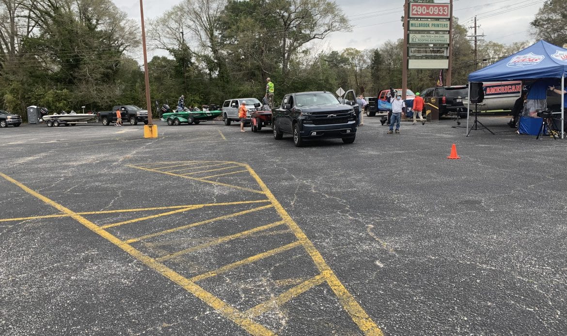 80 different boats parked at 3575 Main Street in Millbrook for their weigh-in on Thursday afternoon, after a full day of fishing out on the Alabama River.