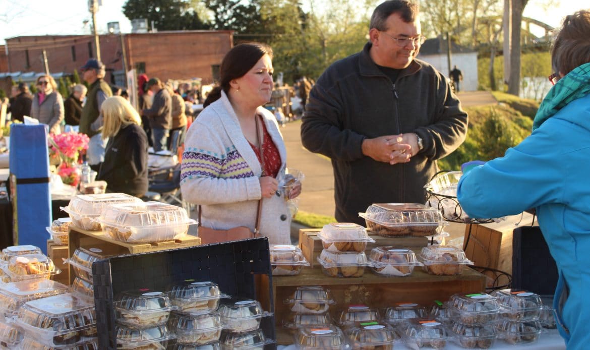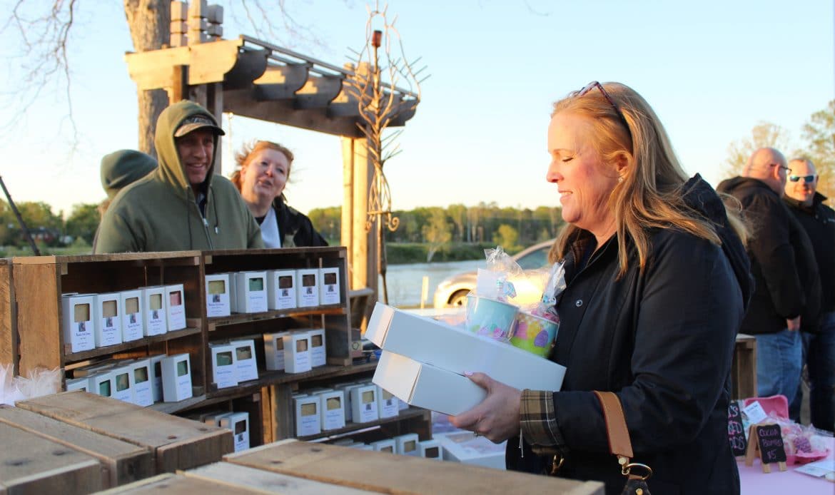 Merchants’ Alley on the bank of the Coosa River downtown was bustling with shoppers and browsers at the season’s first Community Market Wetumpka on Thursday night.